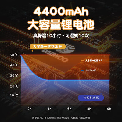 2A充电5.5小时可连续保温12小时以上,type-c充电接口随时充电可实现连续保温,打开可整机冲洗。
