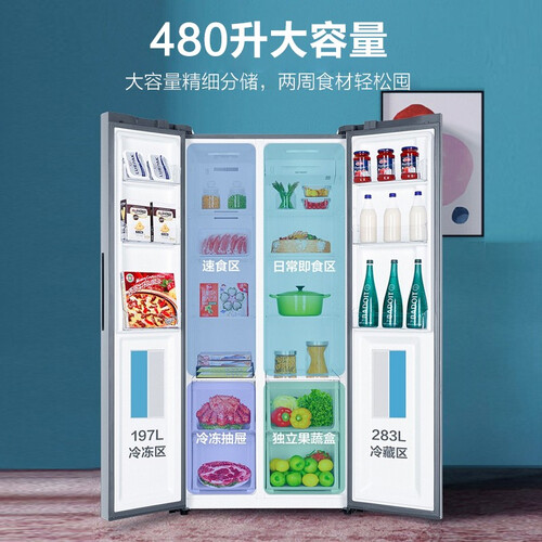 全新升级的风冷无霜技术,长时间使用冰箱内也不会结冰结霜。内部设有可调节搁物架,可以自由进行调节设置。