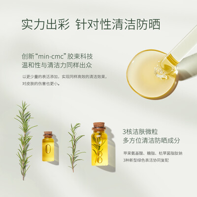 采用胶束科技,含有3重核心洁肤微粒,针对不同肌肤清洁不同防晒成分,温和清洁不伤害肌肤,深层洁净不紧绷,实现污垢无残留。