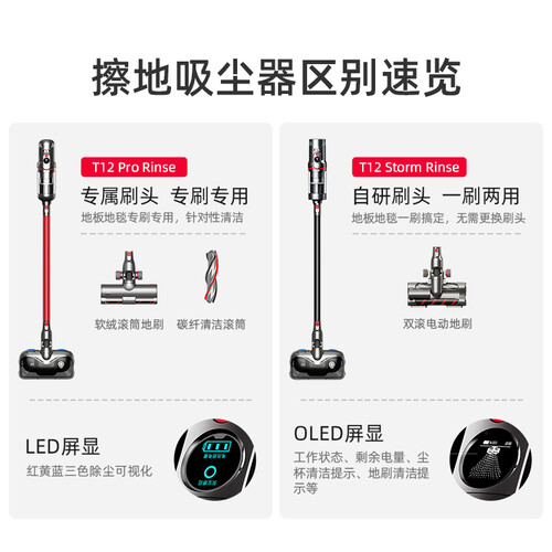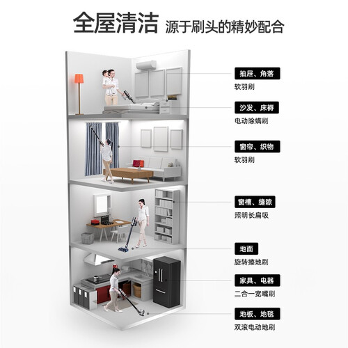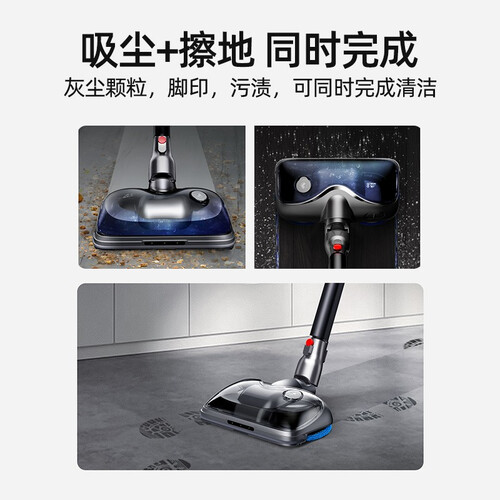 创新自研旋转擦地刷,前吸后擦地面脏污一次搞定,使用时前进自主助推,使用更省力。智能数字化除尘,灰尘越多吸力越强。