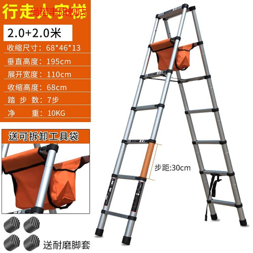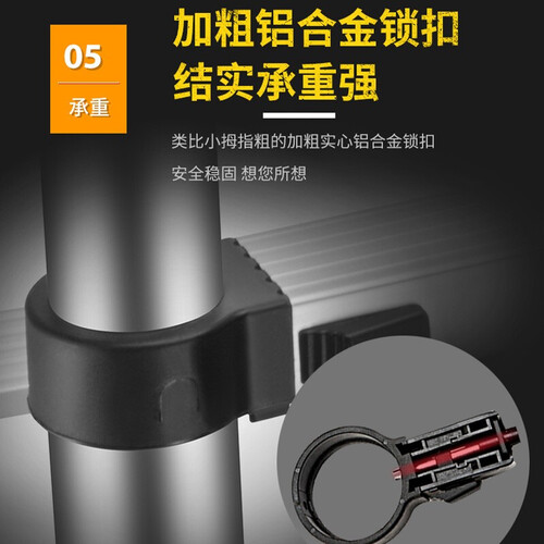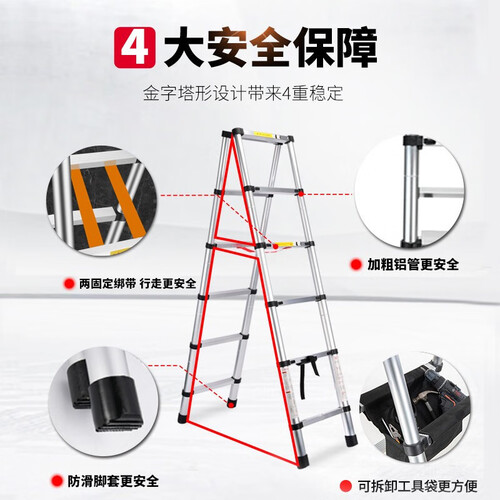 可折叠伸缩式的设计,方便携带,随时随地都能轻松使用。创新升级的安全绑带,可放置梯子劈叉,提升稳定性。