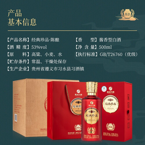 采用传统的酿酒工艺进行酿制,带来酱香显著的白酒。选用川南地区的红缨子高粱,形成习酒自己的酒香味。
