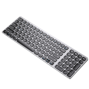 采用了极窄边框设计,准化键程,纤薄简约,敏捷扩频技术,一触即发,按键寿命长,激光镭雕字符,清晰不掉色。