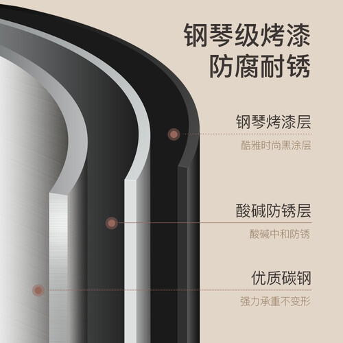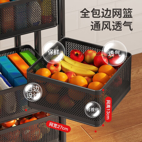 包边镂空的网蓝设计,能够带来良好的透气性从而更好地保存食材的新鲜。表面进行了烤漆处理,防腐不易生锈使用更持久。