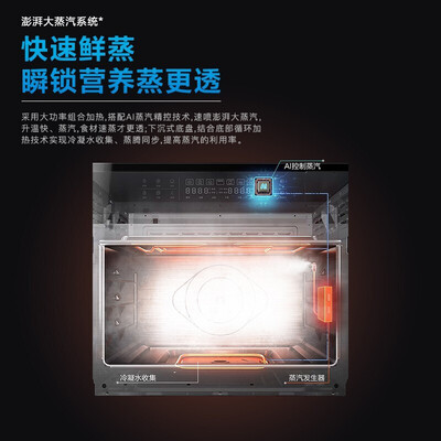 40道自动菜谱,小白轻松做美味菜肴。澎湃大蒸汽均匀分配,烹饪效果好。外置水箱无需频繁加水,缺水提醒自动弹出,加水不开门。