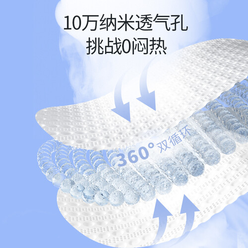 变频蓝芯专利技术,快速吸收,宝宝睡得好。12万纳米透气孔,轻轻松松排走闷热湿气,循环透气,不会闷屁屁。