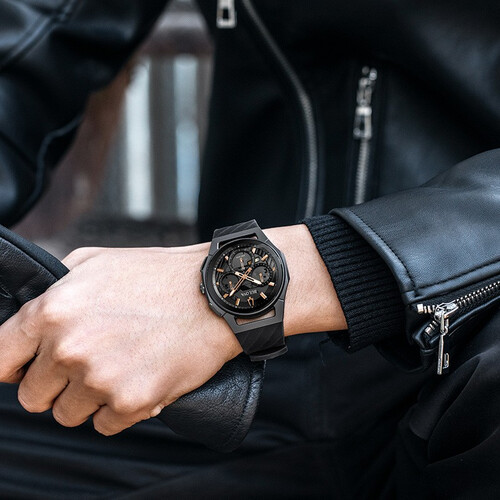 采用弧形的表盘设计,贴合男生手腕线条,提升佩戴舒适感,结合内置高振频机芯,精准读时,时刻准确,使用更方便。