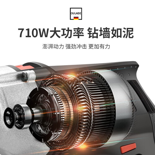 经过多个权威认证,品质有保障,使用更安心。冲击钻拥有710W大功率,带来强劲冲击力,钻墙如泥般轻松。