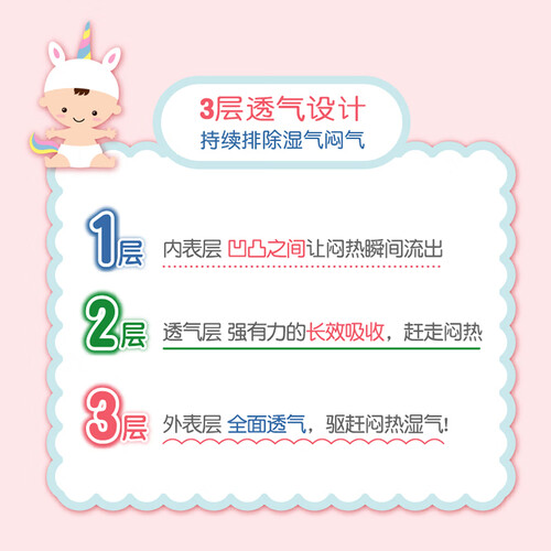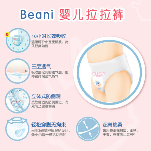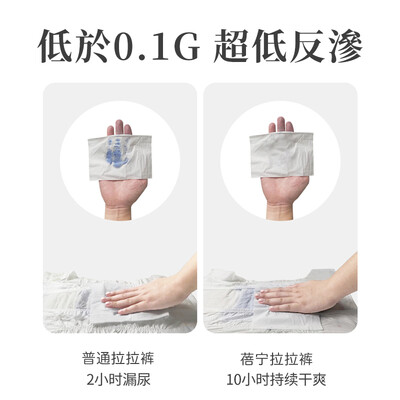 拥有十小时长效吸收功能,不惧尿液外露,使用方便更快捷。采用弹力腰围设计,能够自由收缩,防止勒伤腰部肌肤。