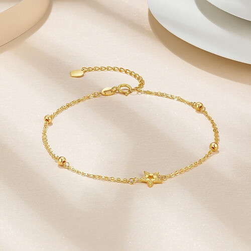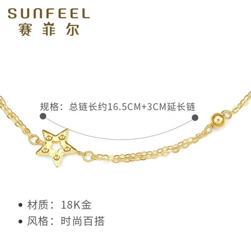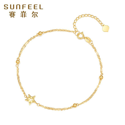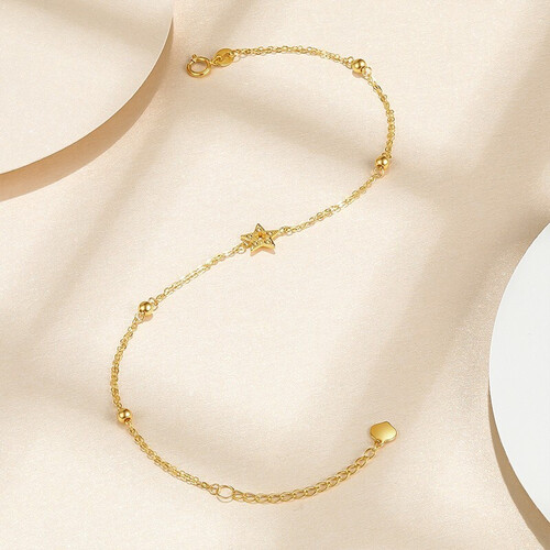 以闪耀的星星为灵感设计,圆珠间隔于腕间,更加吸引眼球;18K金材质,硬度高,长时间佩戴不易褪色和变形。