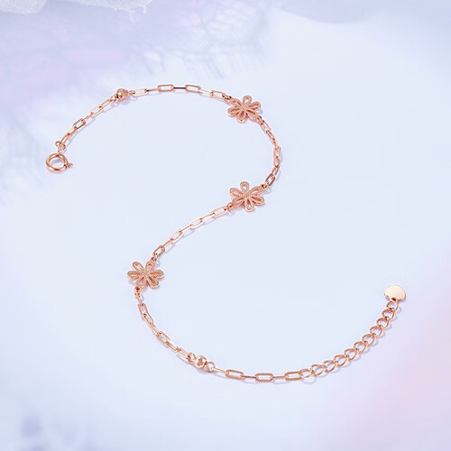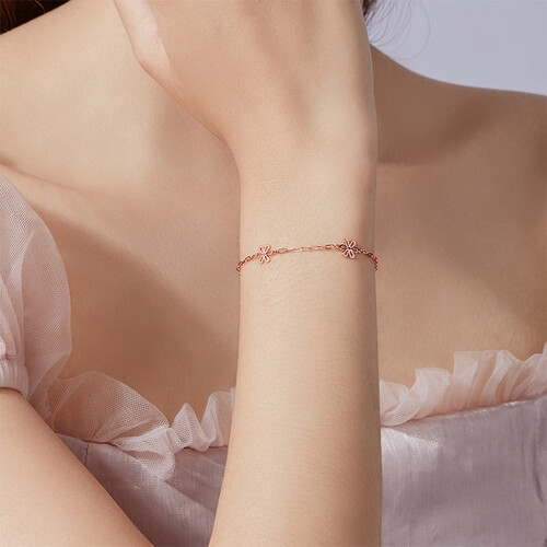 采用18K玫瑰金材质打造,轻奢时尚,点亮腕间精彩。融入了曼妙的花朵元素,增添时尚感,更能凸显气质。