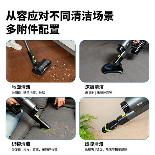拥有无刷数码电机配置,运行噪音更小,陪你安静做家务。一体式收纳架可收纳配件,节省空间不凌乱,家居看起来整洁干净。