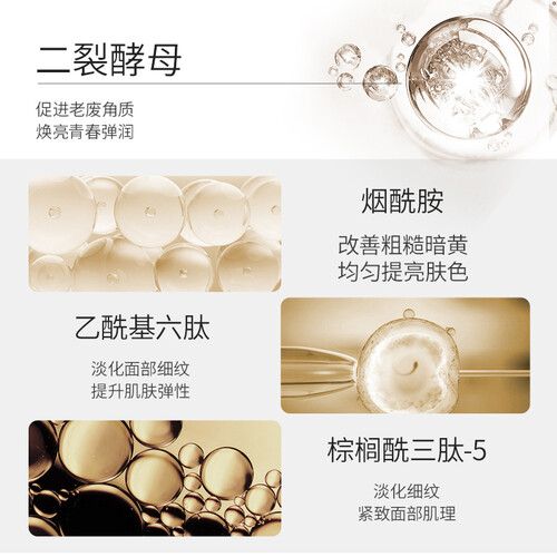 重焕肌肤年轻活力,一套搞定。蕴含95%高浓度酵母精华的保湿水,一抹水润维稳,湿敷理想之选,搭配多肽护肤乳,赶走肌肤细纹。