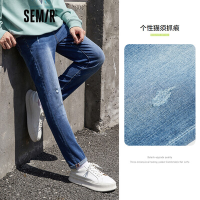 高回弹保型的弹力面料,耐拉伸不易变形,贴身好穿更不易松垮。利落简洁的直筒版型设计,配合裤身猫须抓痕,彰显出时髦细节感。