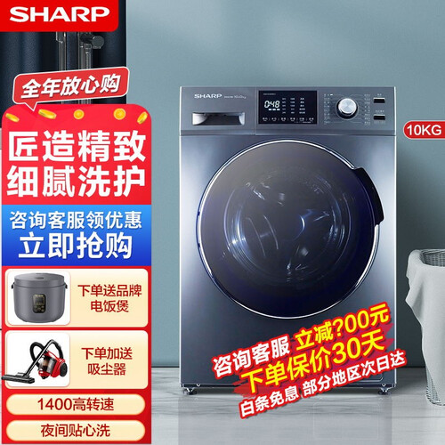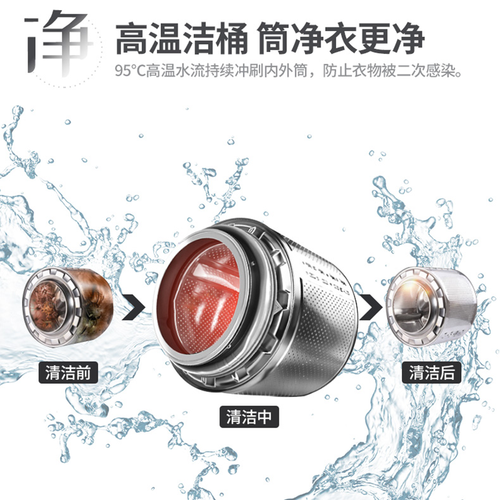 选用BLDC低音变频电机,强劲动力节能环保,洁净衣物更干净。10Kg海量洗涤空间,一次洗净全家衣物,更省力。