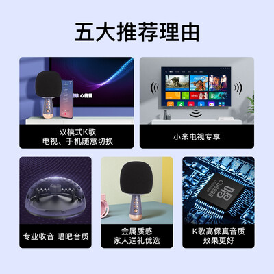 双模式K歌,手机电视随意切换,全新芯片升级体验豪华KTV混响效果。无线无损音质,信号稳定延迟低,四向发声效果震撼。