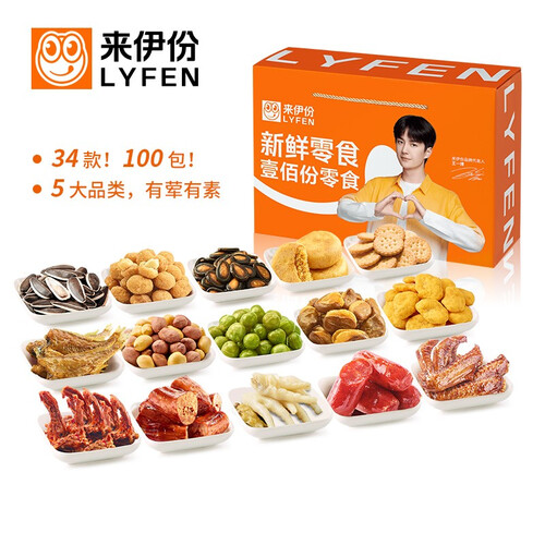特别明星定制款零食大礼包,共一百袋的大容量,种类多样不用选,畅享美食带来好心情。可盐可甜且有荤有素,满足吃货所有要求。