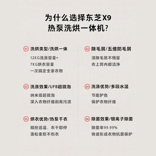 内置UFB超微泡技术,绵密泡沫轻松瓦解顽固污渍。采用12kg大洗涤容量,更大的洗护空间,减少褶皱生成,整洁衣物。