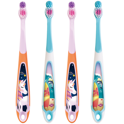 大环形的短手柄,把握舒适防止卡喉,可放心更宝宝洁齿使用。同时柔然的杜邦刷毛,搭载小巧刷头,深入口腔易清洁。