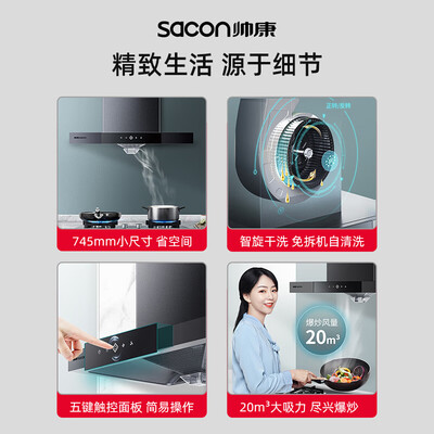 745mm小尺寸机身,不占用过多位置,小户型厨房也能轻松容纳;采用急刹甩油科技,清洁更加轻松。