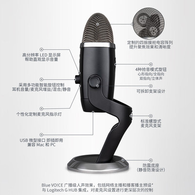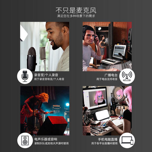 带有智能旋钮控制,可以直观显示音量,轻松控制麦克风增益。内置四振膜枪阵列,多种拾音模式自由切换,满足用户需求。