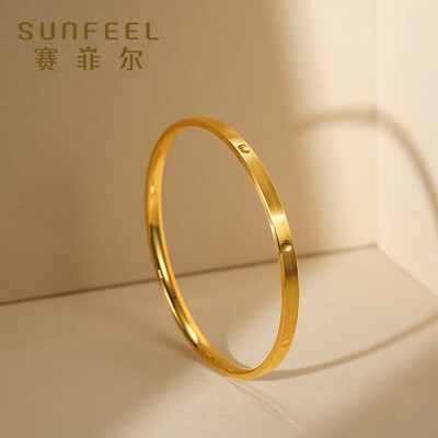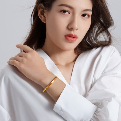 简约造型,黄金质感,款式经典又不失优雅,演绎温柔果敢个性,推拉镯设计,可灵活调节镯径,方便佩戴,光面工艺打造,抛光精细。