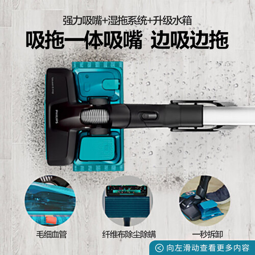 吸尘+湿拖系统,可用于不同的地面,而且顽固污渍也能清除干净。设计360°环绕式吸嘴,支持前后左右同时吸尘,清洁更干净。