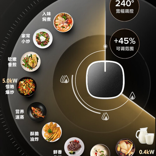 黑耀鎏金设计,外观大气美观,彰显品牌的时尚感。240°宽幅精调火,轻松旋转,灵活操作。