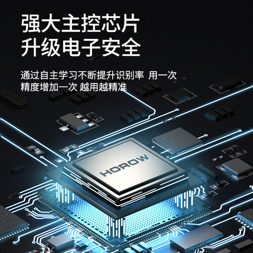 这款电子锁搭载强大的智能芯片,可以精准识别指纹,使其更加快速的开门。内置环保的锂电池可以充电循环使用。
