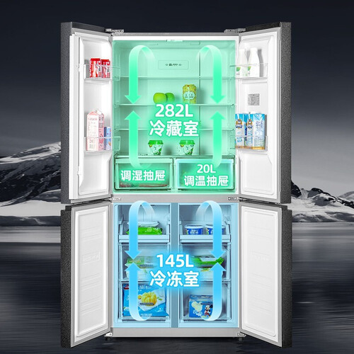 搭载优质变频压缩机,控温精准,节能省电,生态养鲜,多维度提升。内置原鲜钛除菌净味,保护食材新鲜影响。