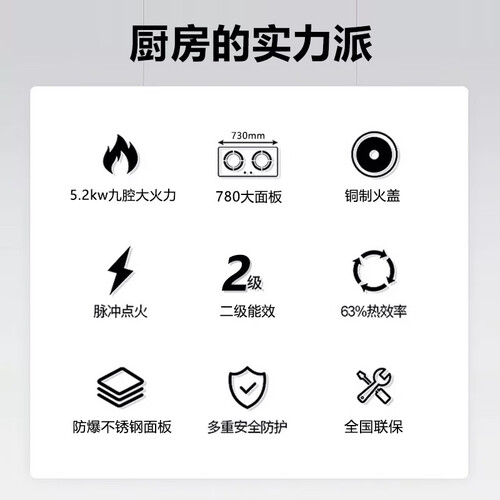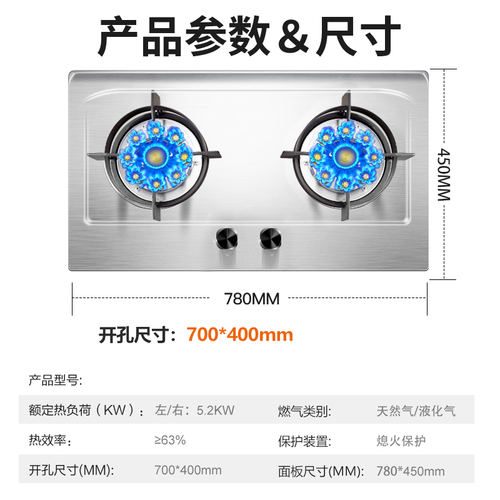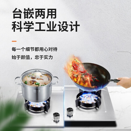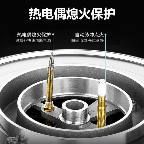 配置热电偶熄火保护装置,能在短时间内切断气源,保障安全使用。加厚材质的不锈钢面板,为清洁减小难度,保持亮色光泽。