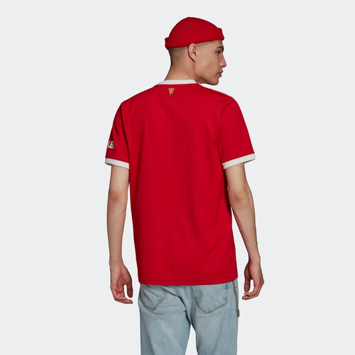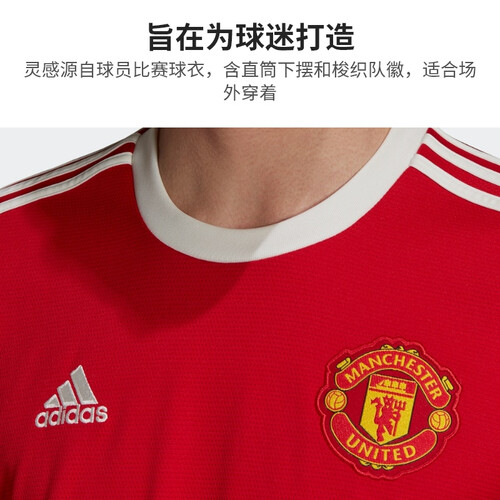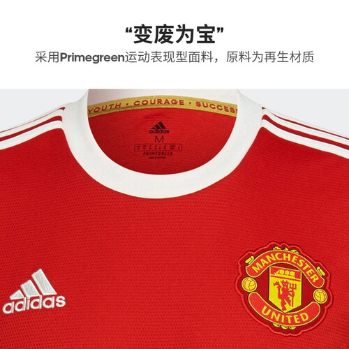 再生材质的面料,尽显环保的态度,直筒的下摆利落流畅,结合梭织队徽的图案组合,契合球迷对球队的热爱。