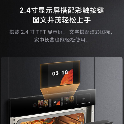 三层防烫玻璃门,刚刚烤熟就能取,守护家人安全。56L大容量,一次可以烹饪6道大菜,朋友欢聚从容应对。