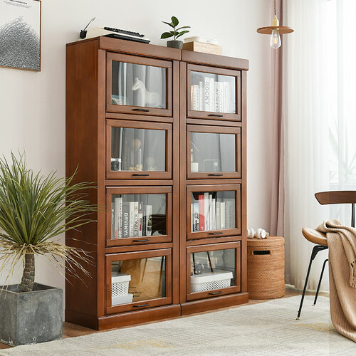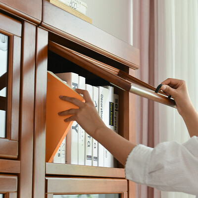 与常见的向外开合不同,柜门采用上翻式的设计,取放书本时向上打开,轻松省力,减少占用室内空间。