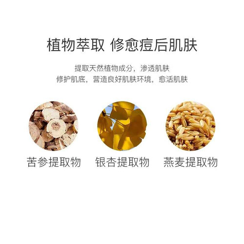 含苦参、银杏、燕麦等天然植物精粹,渗透肌肤修护肌底,给肌肤营造良好的缓解。解决各种痘肌烦恼,解锁细腻好肤质。