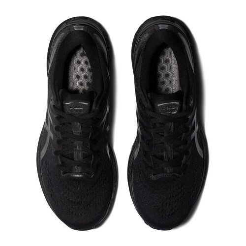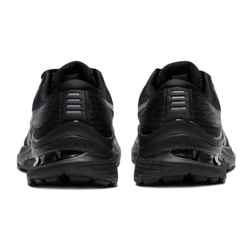 后跟内嵌可视GEL胶,轻量回弹,有效缓冲落地时地面冲击,呵护膝盖健康。黑色系鞋身,低调酷感,适应多场合穿着。
