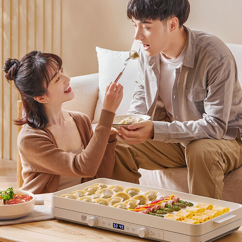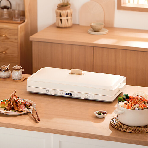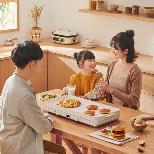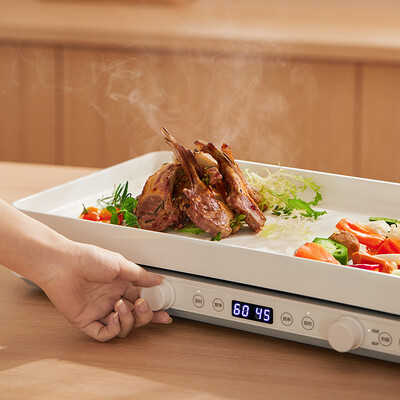优选纳米陶瓷涂层烤盘,耐高温不易掉漆,防止粘底易于清洗。面式发热设计,整个平面发热均匀,给食物更好的烹饪温度。