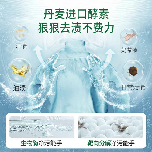 洗涤、除菌、香氛、护理四效合一,洗衣更护衣,穿衣更放心。采用微胶囊爆香科技,让衣物留香更持久。弱酸配方,洗衣不伤手。