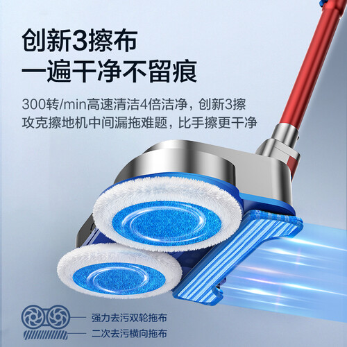 手柄高度自由调节,老少使用无需弯腰。采用全新3擦头科技,去污力更强,一拖即净。内置紫外线灯,真正实现抑菌除螨。