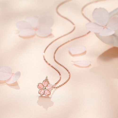 粉嫩嫩的樱花在脖颈间流转,显得整个人都柔和了许多。o字形传统工艺的链条,把品质体现的淋漓尽致,送爱人、朋友、长辈都合适。