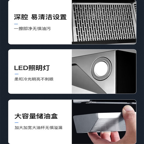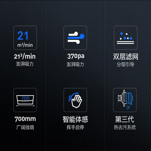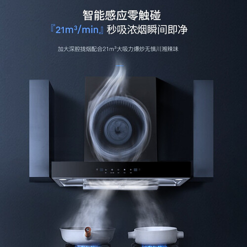 搭载智能体感设计,挥手即可调节风速,带来便捷使用体验。加大深腔拢烟设计,能够带来大风压,无惧各种香辣爆炒。
