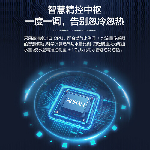 采用了高精度的进口CPU,具有灵敏调控热水器火力和出水量,能够将温度准确到上下1摄氏度。同时配置直流变频动机,节能环保。