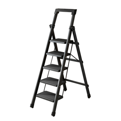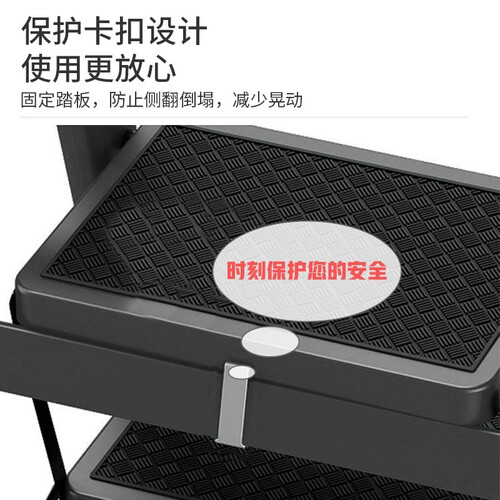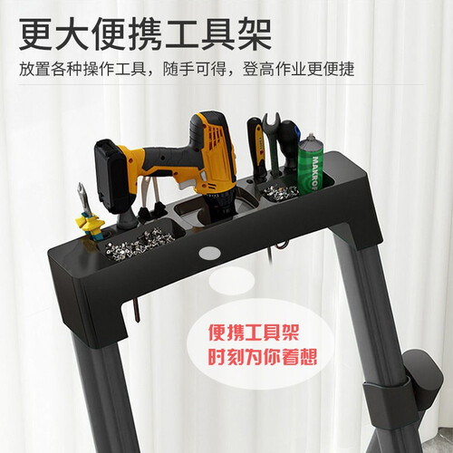 采用工具架的设计,各种工具可排列摆放,方便登高作业时随手取用。加设保护卡扣,保持踏板固定,提升使用安全系数。
