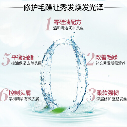 采用零硅油配方,添加茶树精华,泡沫细腻丰富,温和清洁有效去屑。蕴含多种植物营养成分,长效锁水抚平毛躁,平衡油脂份分泌。