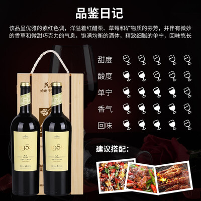 这款酒色泽呈现紫红色,酒体饱满协调,带有香草与甜巧克力的芳香,让人回味。使用黑葡萄酿造的酒含有丰富的酚类物质,单宁强烈。