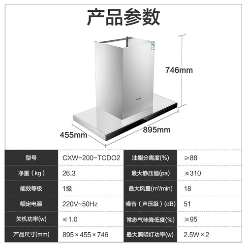 运行声音低至51分贝,烹饪过程不扰人,静享美好烹饪瞬间。搭载400mm超长LED灯,柔和不刺眼,点亮暖心烹饪过程。