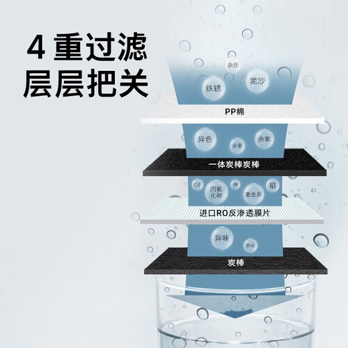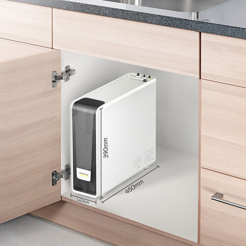 采用纤薄机身设计,厚度仅有14cm,厨下安放不占空间,安装很简单。减震低噪设计,减少制水声音,不打扰生活。