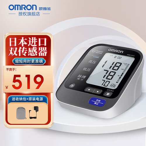 采用双重传感技术,压力传感和检测传感结合,保证测量结果更准确,袖带添加佩戴自检,防止错误佩戴影响测量。