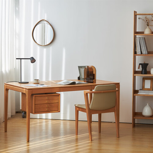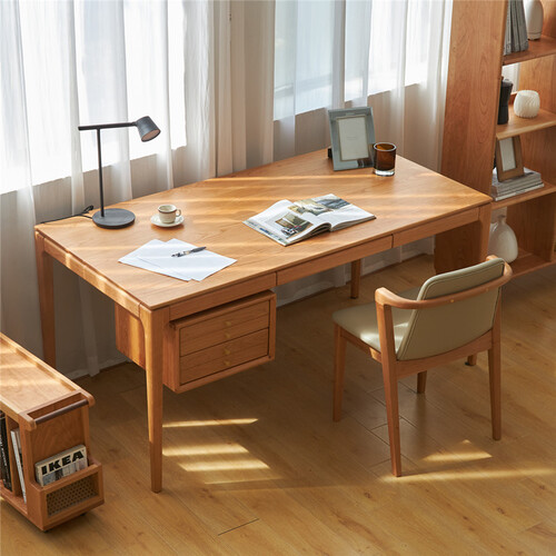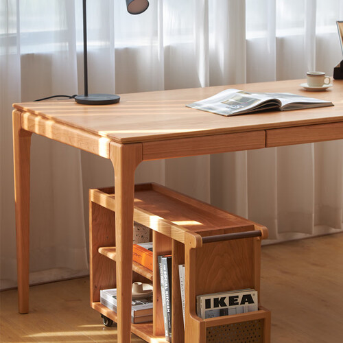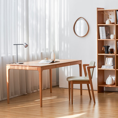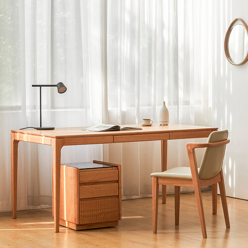 质地坚实的樱桃木打造书桌,透露出纯朴自然的风情。简约风格设计,让家具拥有轻盈的身姿,摆脱传统笨重感,给人温婉恬静的观感。