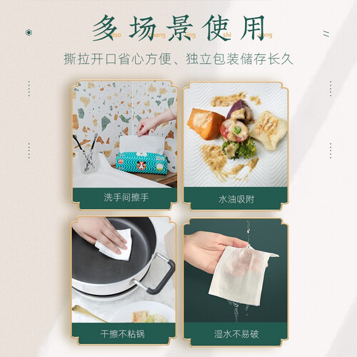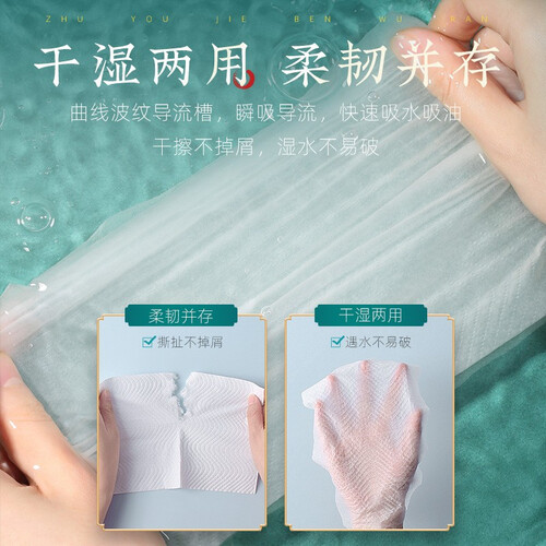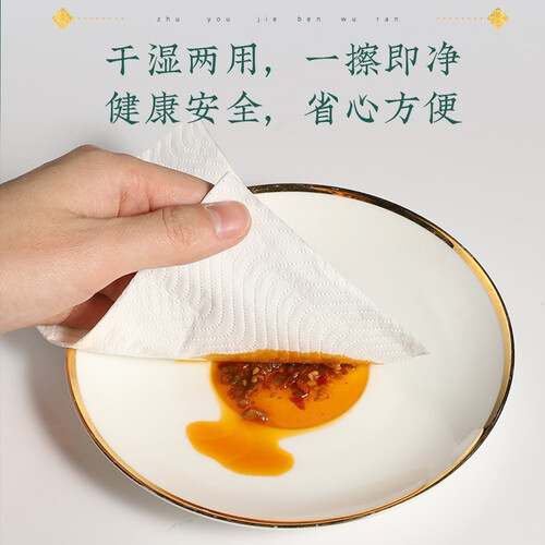 纸张表面采用曲线波纹导流槽,能够将油分和水分牢牢锁住,具有更强的吸水吸油能力,轻轻一擦即可擦干油渍水渍。